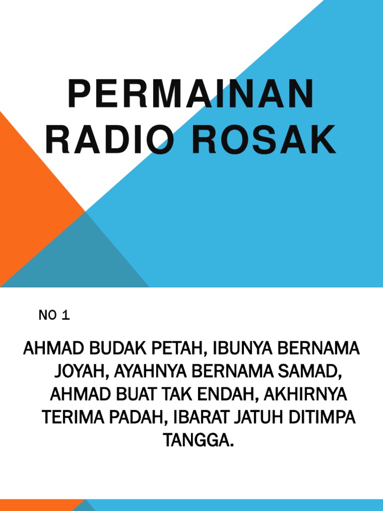 Ahmad budak petah, ibunya bernama bedah, ayahnya bernama samad, ahmad buat tak endah, akhirnya terima padah, ibarat jatuh ditimpa documents similar to permainan radio rosak. A malaysia's largest malay newspaper. Lebih jiwa memberontak dan amarah berlegar.